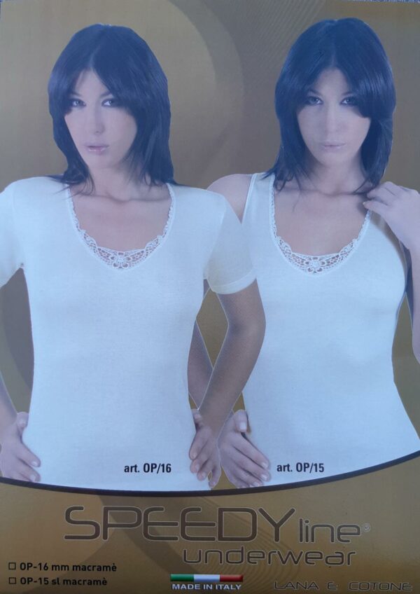 Canotta Donna lana/cotone spalla larga e manica corta